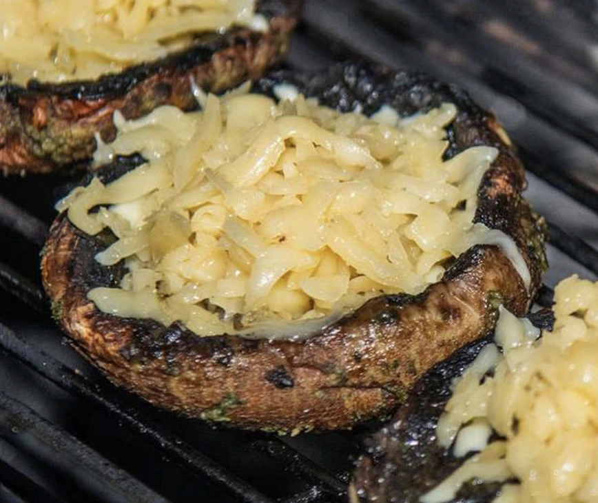 6. Pasar el portobello a fuego indirecto a una temperatura de 150°C/300°F y tapar hasta que el queso se derrita.