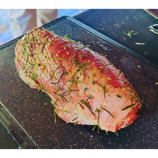 a) Sazonar toda la pieza con Aceite Oliva y Rub del campo SCP, poner en la parrilla a fuego directo a 600°F – 315°C hasta crear una costra uniforme por todo el lomito.